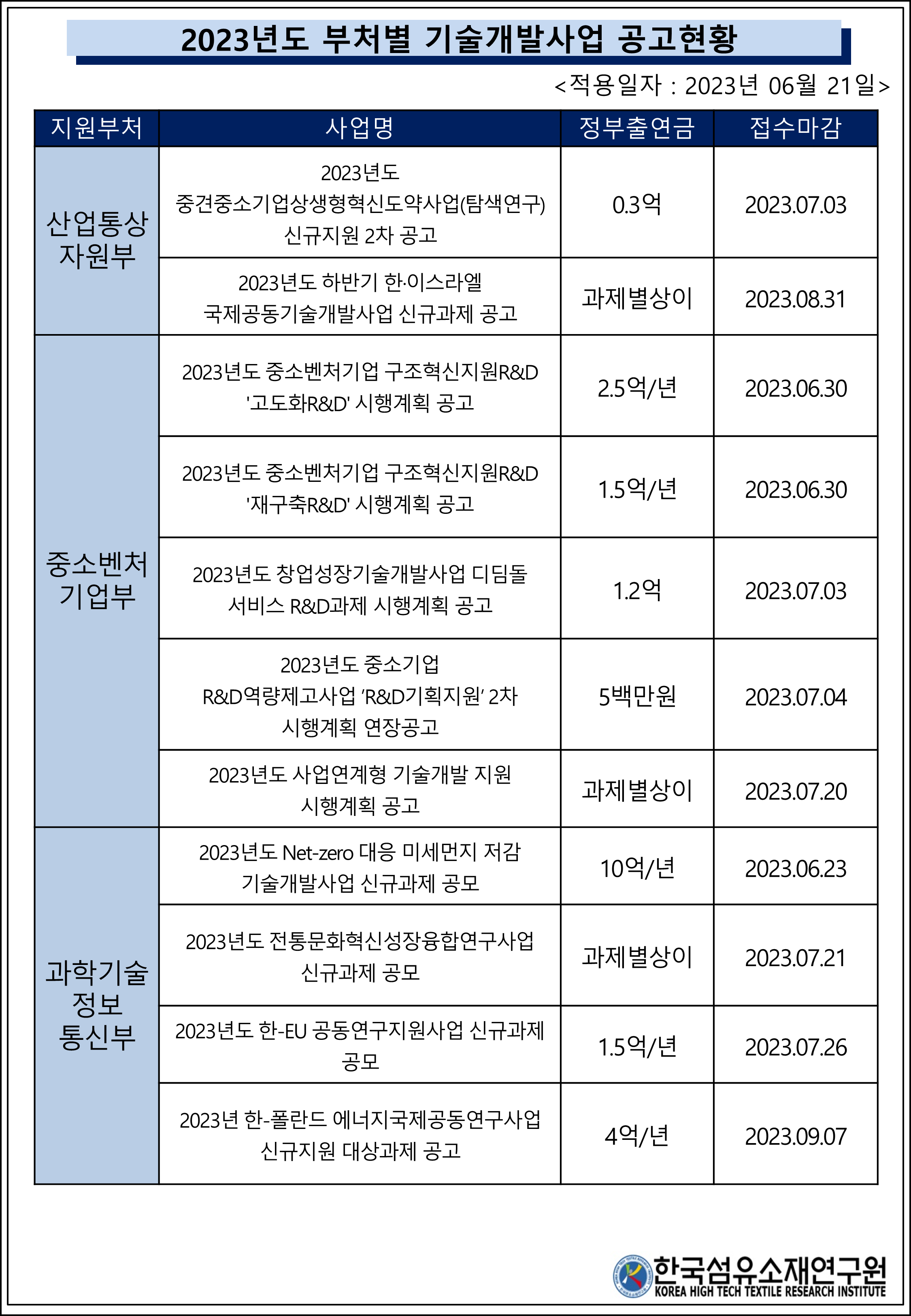 2023³â Á¤ºÎºÎóº° ±â¼ú°³¹ß»ç¾÷ °ø°íÇöȲ(2023.06.21.)