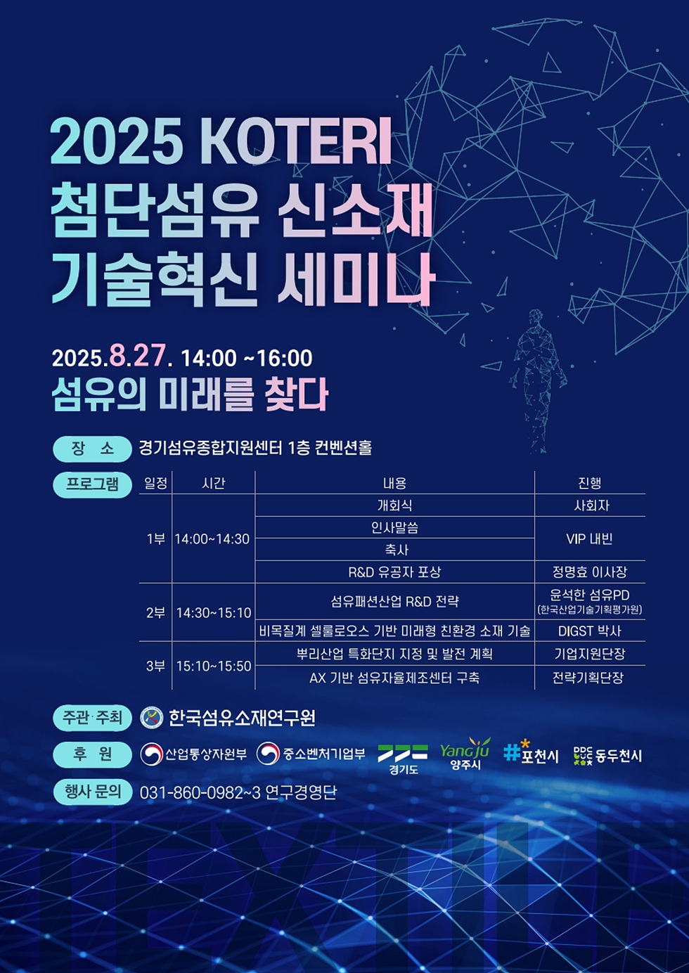 ¡Û¼¼¹Ì³ª¸í: 2025 KOTERI ÷´Ü¼¶À¯ ½Å¼ÒÀç ±â¼úÇõ½Å ¼¼¹Ì³ª ¡ÛÀÏ ½Ã: 2025. 8. 27. (¼ö) ¿ÀÈÄ 2½Ã ¡ÛÀå ¼Ò: °æ±âµµ ¾çÁֽà ÆòÈ·Î 1215 °æ±â¼¶À¯Á¾ÇÕÁö¿ø¼¾ÅÍ 1Ãþ ÄÁº¥¼ÇȦ ¡Û¹® ÀÇ Ã³: ¿¬±¸°æ¿µ´Ü 031-860-0983