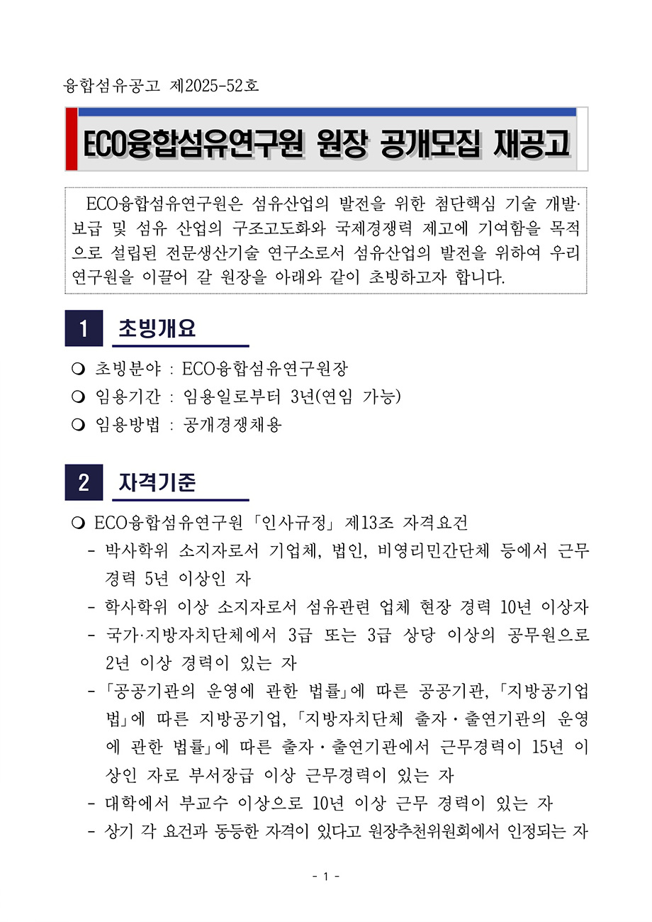 ÷ºÎÆÄÀÏ : 1. [ECOÀ¶ÇÕ¼¶À¯¿¬±¸¿ø] ECOÀ¶ÇÕ¼¶À¯¿¬±¸¿ø ¿øÀå °ø°³¸ðÁý (Àç)°ø°í¹®.pdf(127283) download:7018ȸ